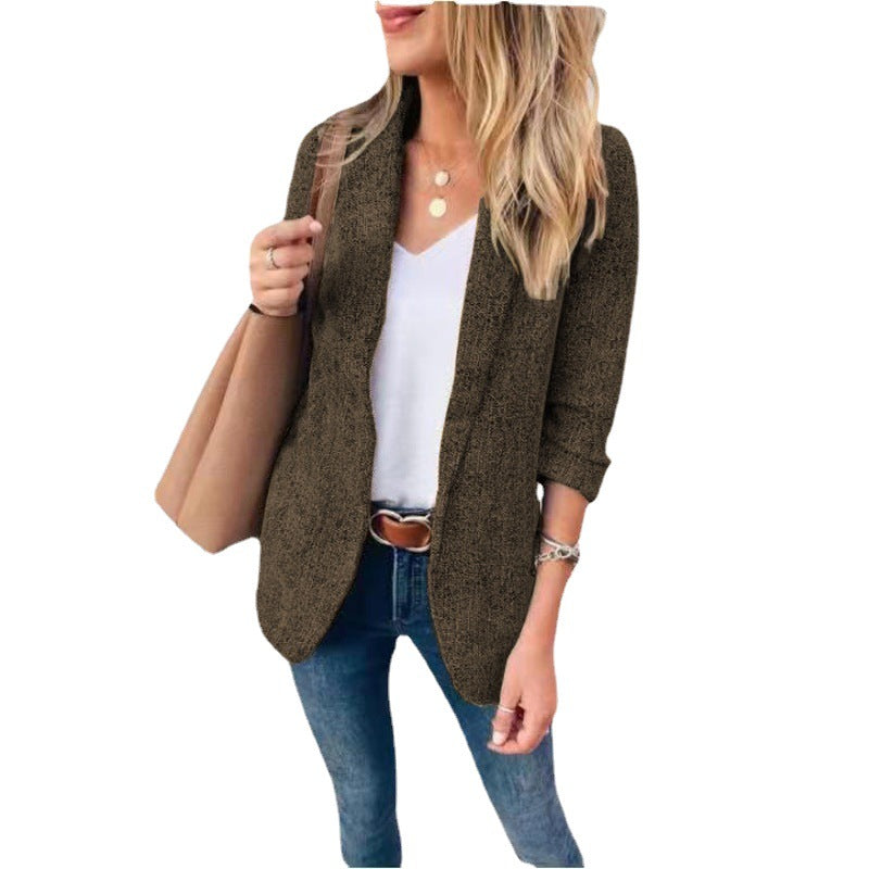 Verleihen Sie Ihrem Ensemble mit dem zweireihigen 3/4-Längen-Semi-Casual-Blazer für Damen einen schicken letzten Schliff. Es ist in neutralen Farben Ihrer Wahl erhältlich, um sicherzustellen, dass es zu jedem Ensemble passt.