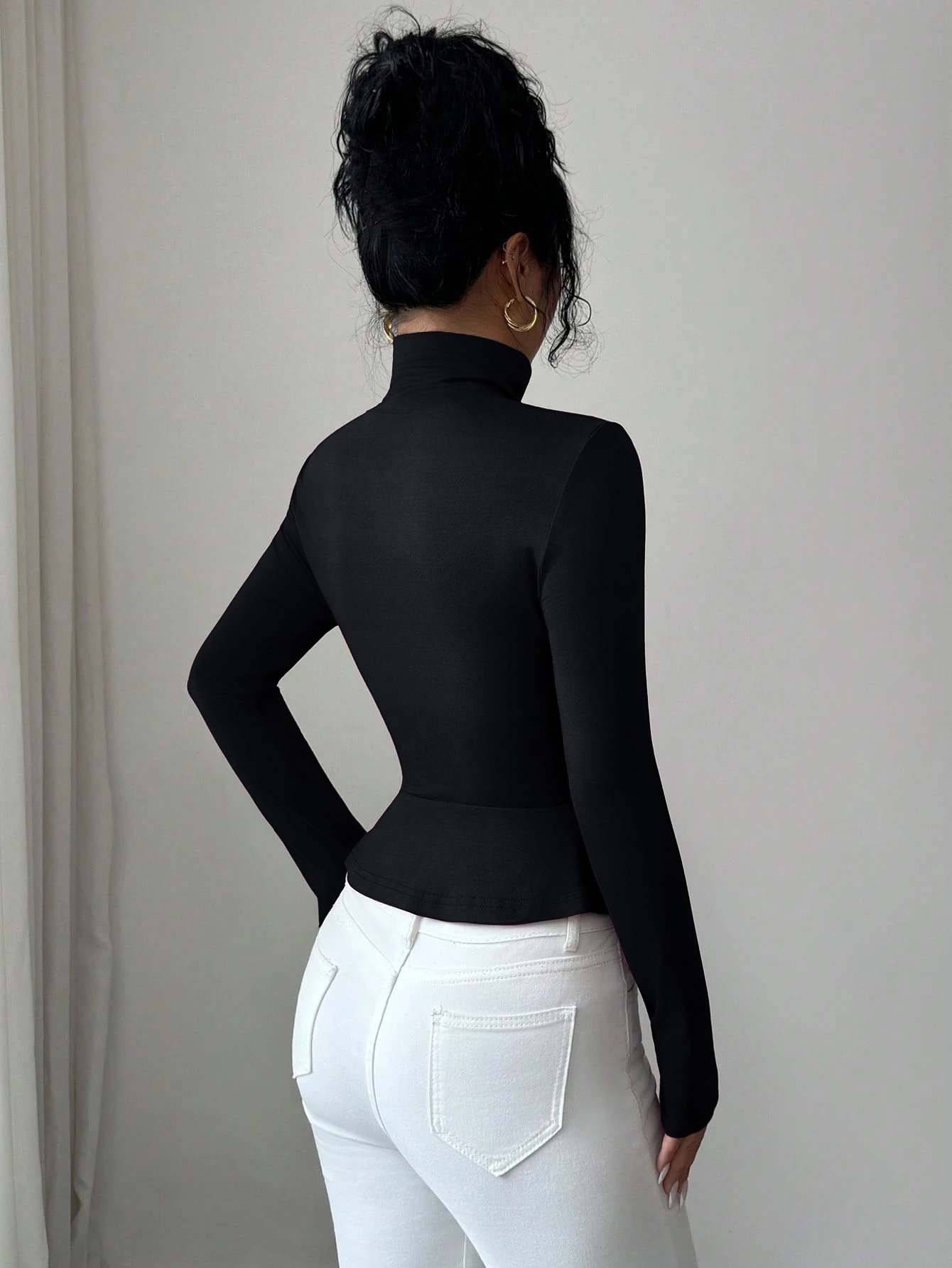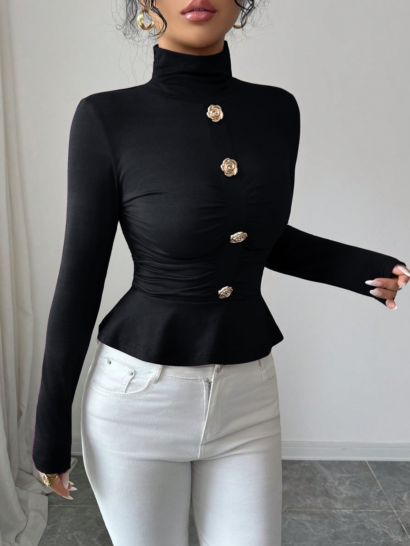 New Autumnwinter High-neck Pleated Top With A Figure-flattering Design