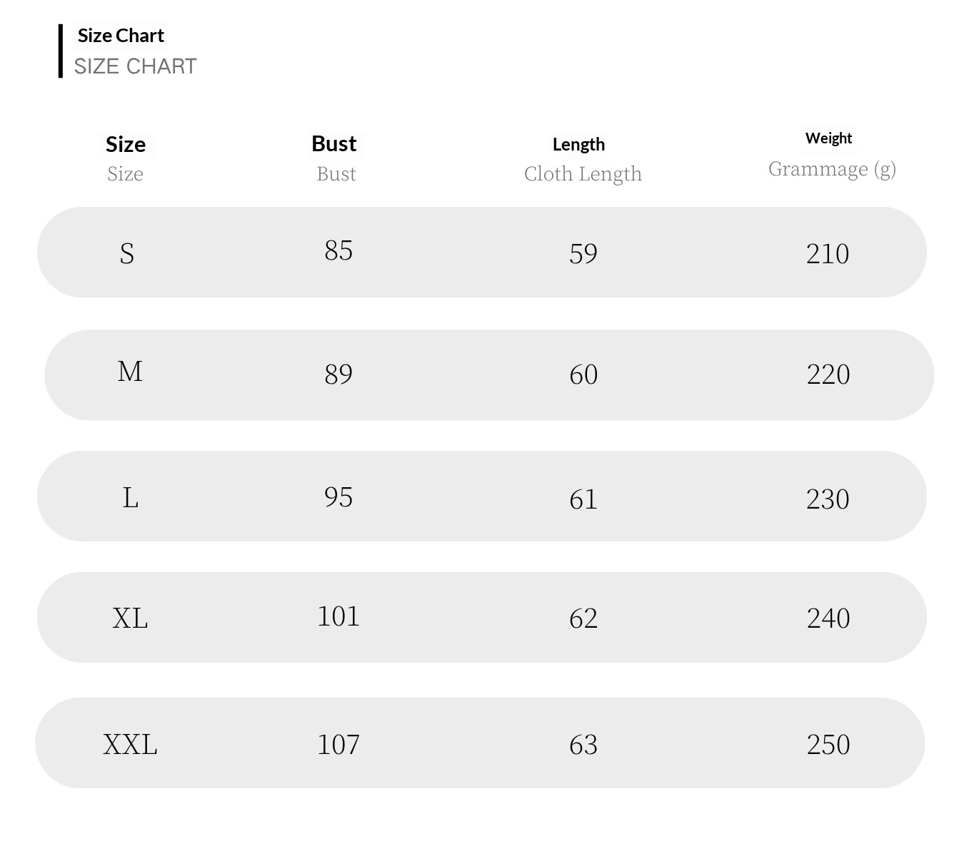 Sizes: S, M, L, XL, XXL