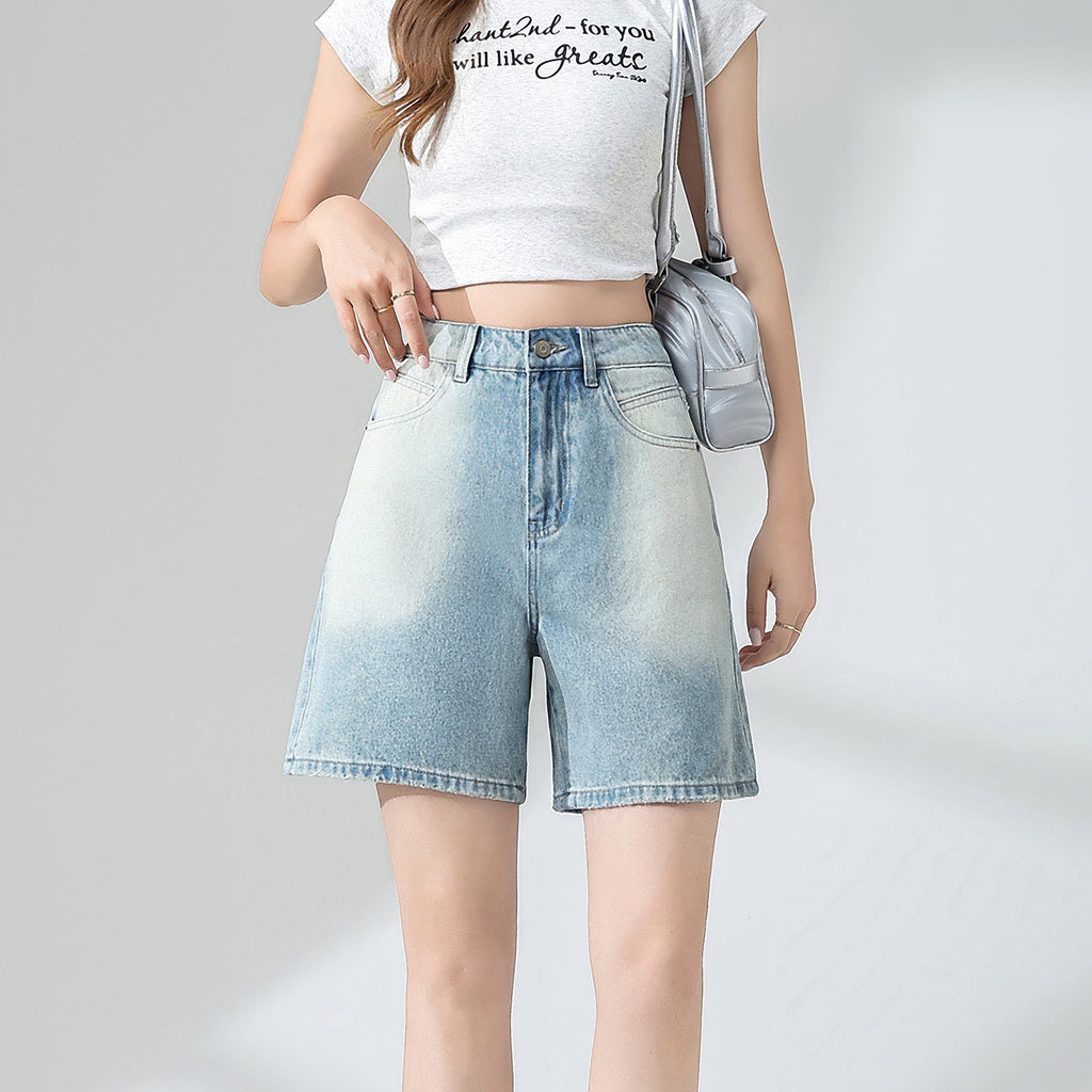 Short en jean bleu rétro-taille haute avec confort en vrac