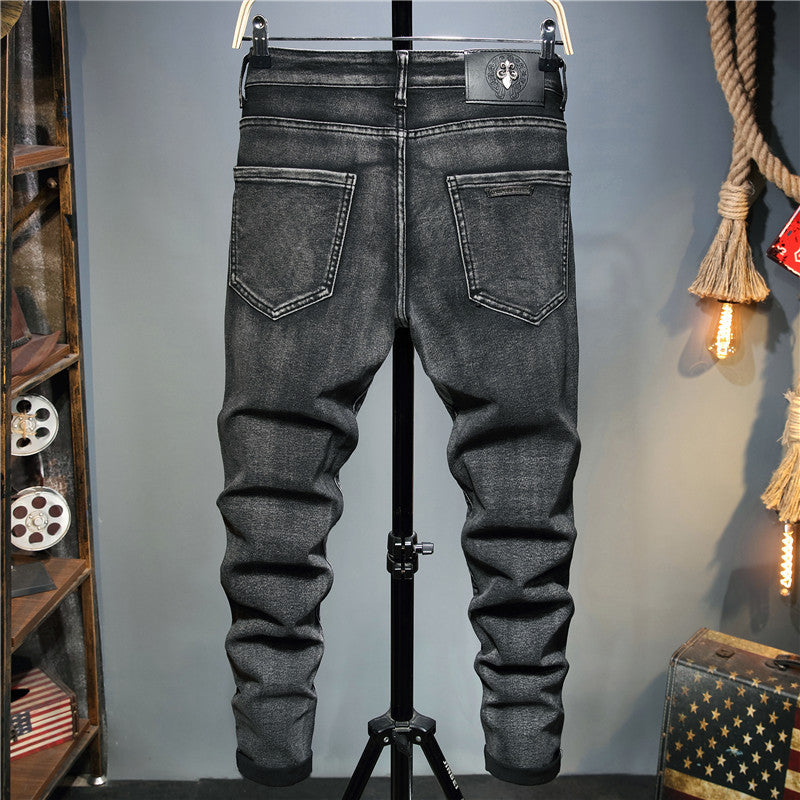 Express your bold personality in the Men’s Slouchy Straight Leg Skinny Jeans that feature a mix of white and black crosses and stars to make yourself stand out.