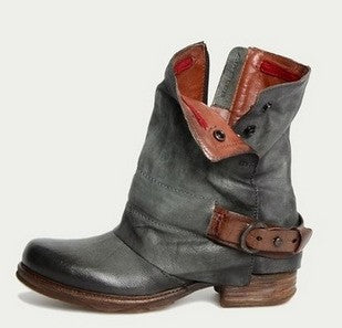 Women's Slouchy Leather Ankle Height Booties with Zipper Side