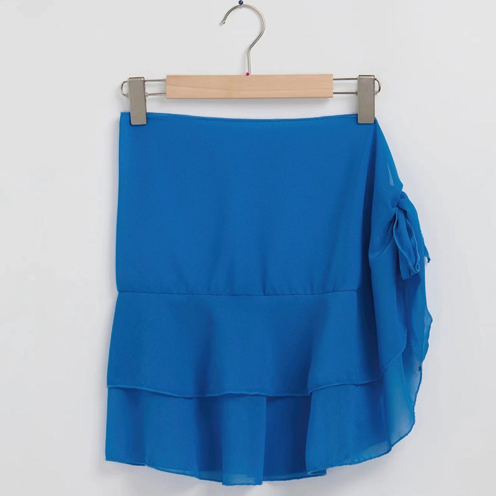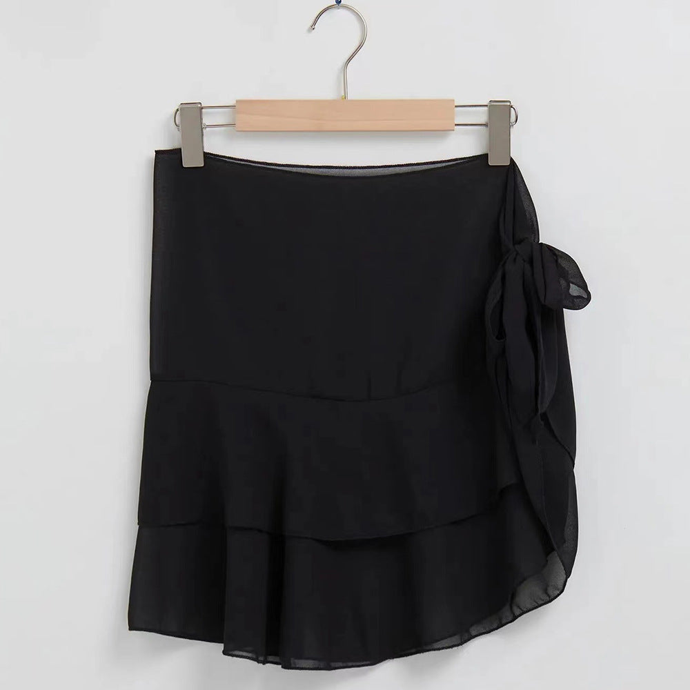 Women's Asymmetrical Tie Waist Mini Skirt with Ruffles