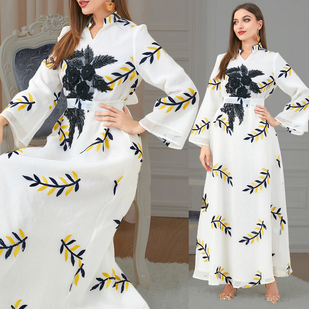 Dames mock neck met lange mouwen botanische print maxi jurk
