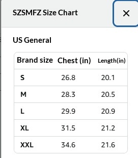Size Chart: