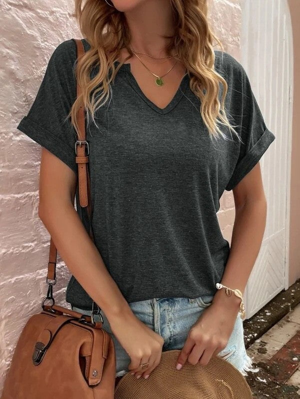 V-Neck Short Sleeved Loose Fitting Women's Tee