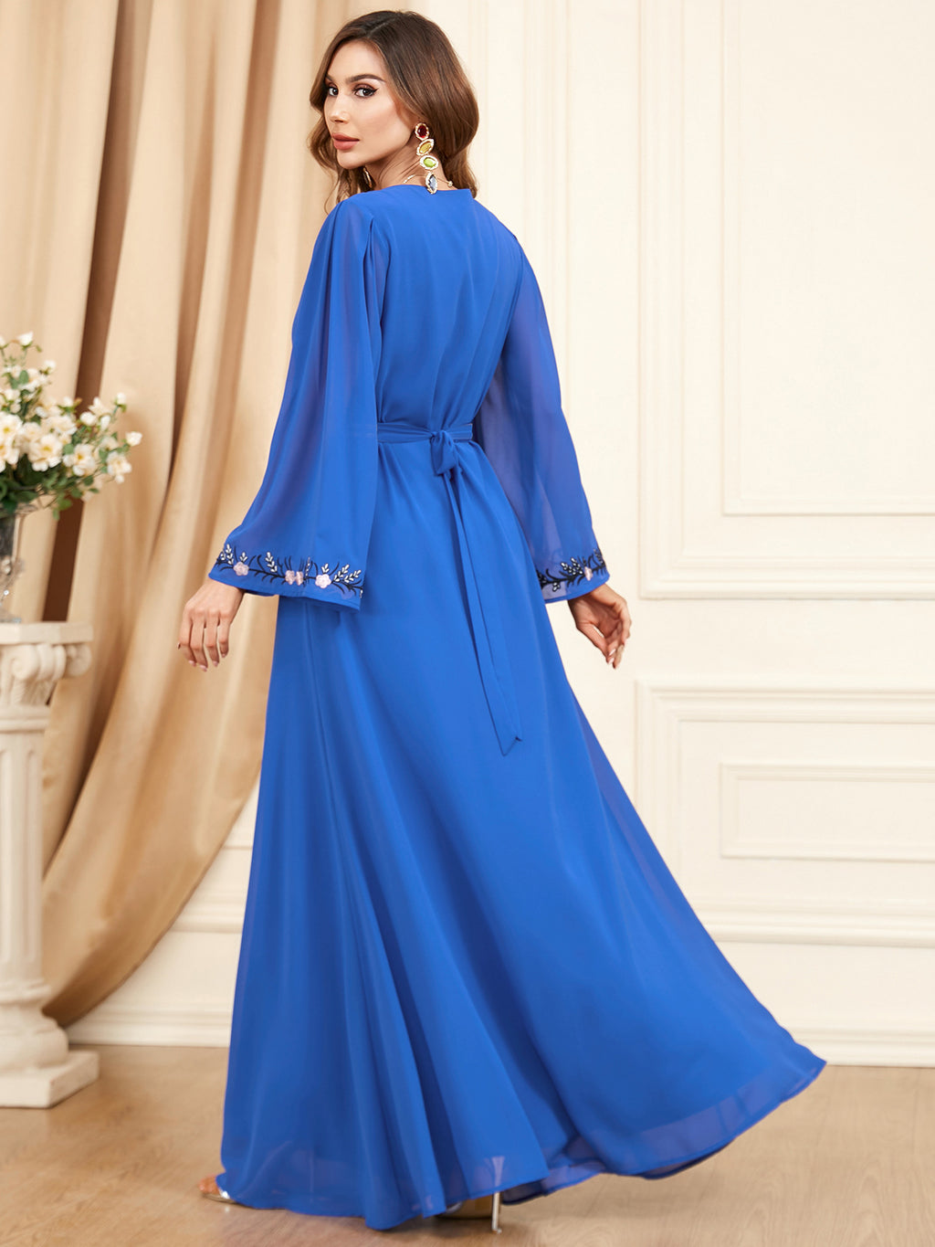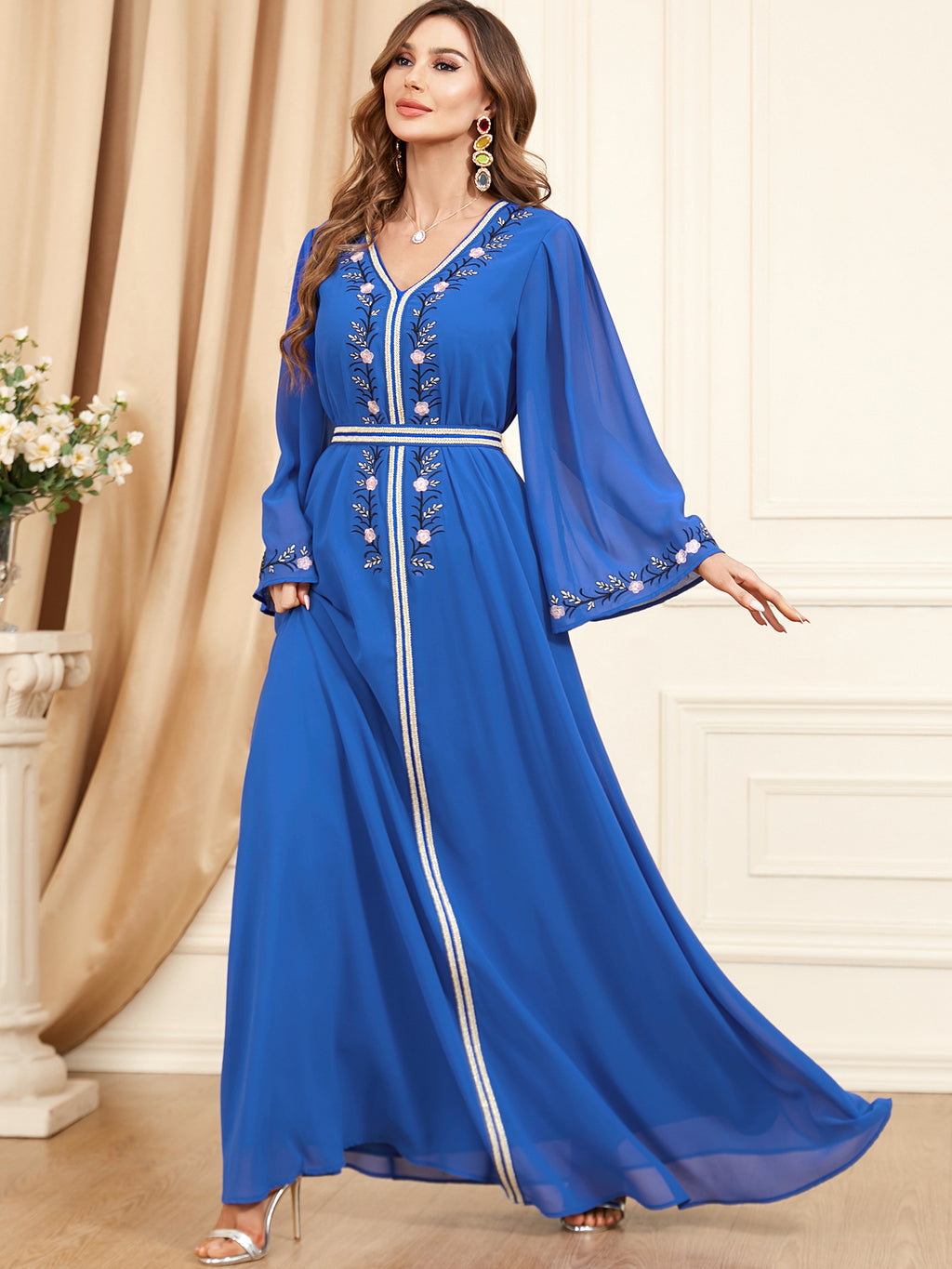 Women's Long Sleeve Maxi Dress with Shimmery Golden Details